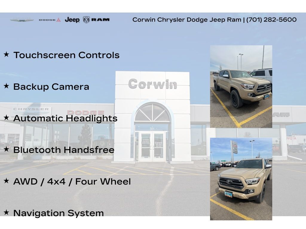 This Toyota Tacoma is well equipped and includes these key features and benefits, Touchscreen Controls, Backup Camera, Automatic Headlights, Bluetooth Handsfree, AWD / 4x4 / Four Wheel, Navigation System.